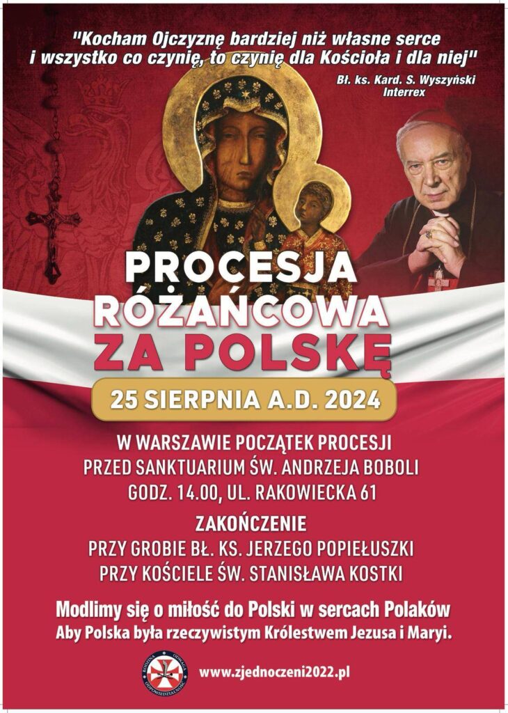 Członkowie inicjatywy Zjednoczeni 2022 poprosili FORT o przeprowadzenie zabezpieczenia Procesji Różańcowej. ?Odbyła się ona ramach Nowenny przed Jubileuszem Dwutysiąclecia Dzieła Odkupienia, w dniu 25 sierpnia A.D. 2024, w wigilię uroczystości Najświętszej Maryi Panny Częstochowskiej oraz w wigilię rocznicy złożenia Jasnogórskich Ślubów Narodu Polskiego. FORT zadbał o bezpieczne i sprawne przeprowadzenie wydarzenia.