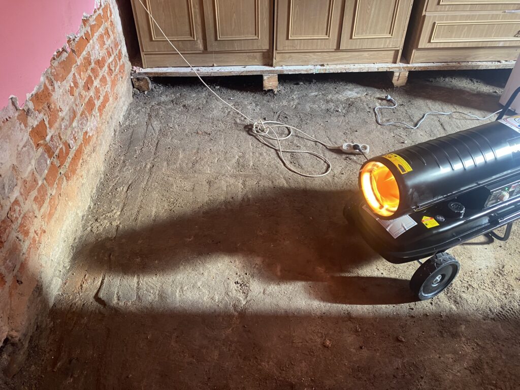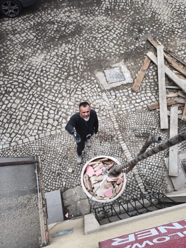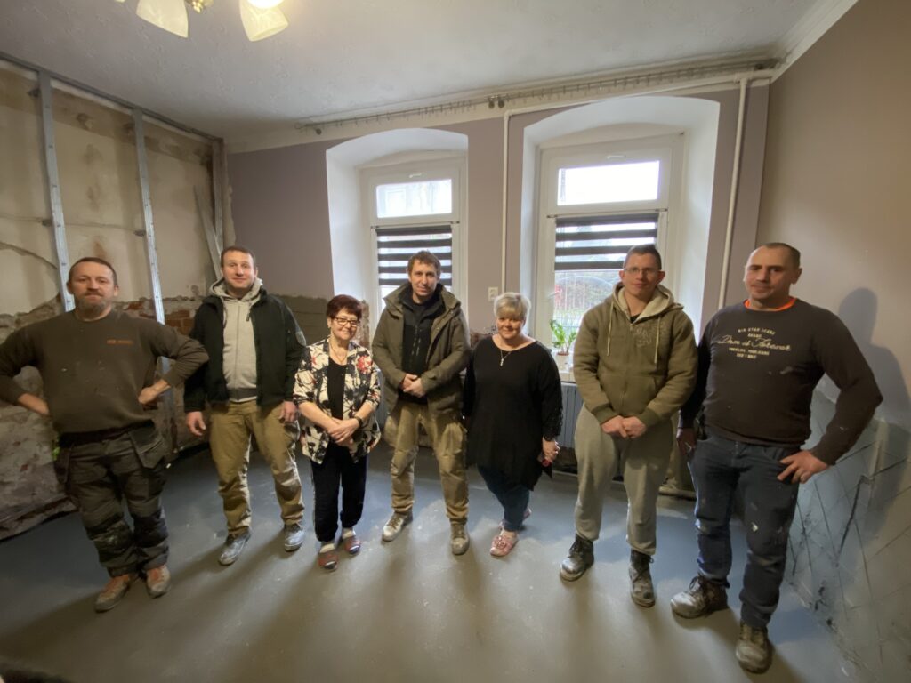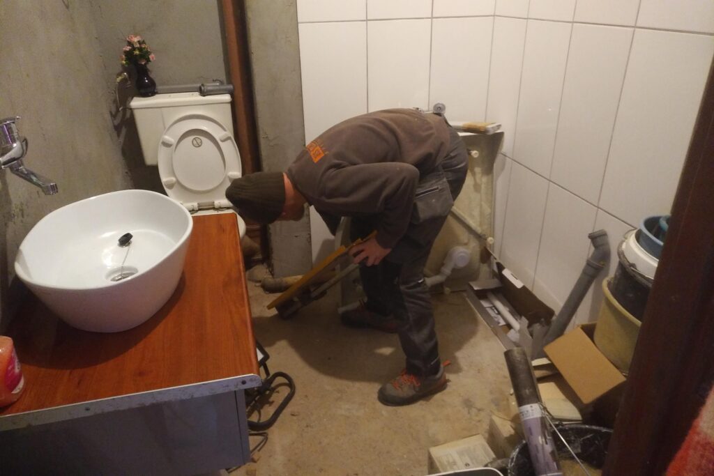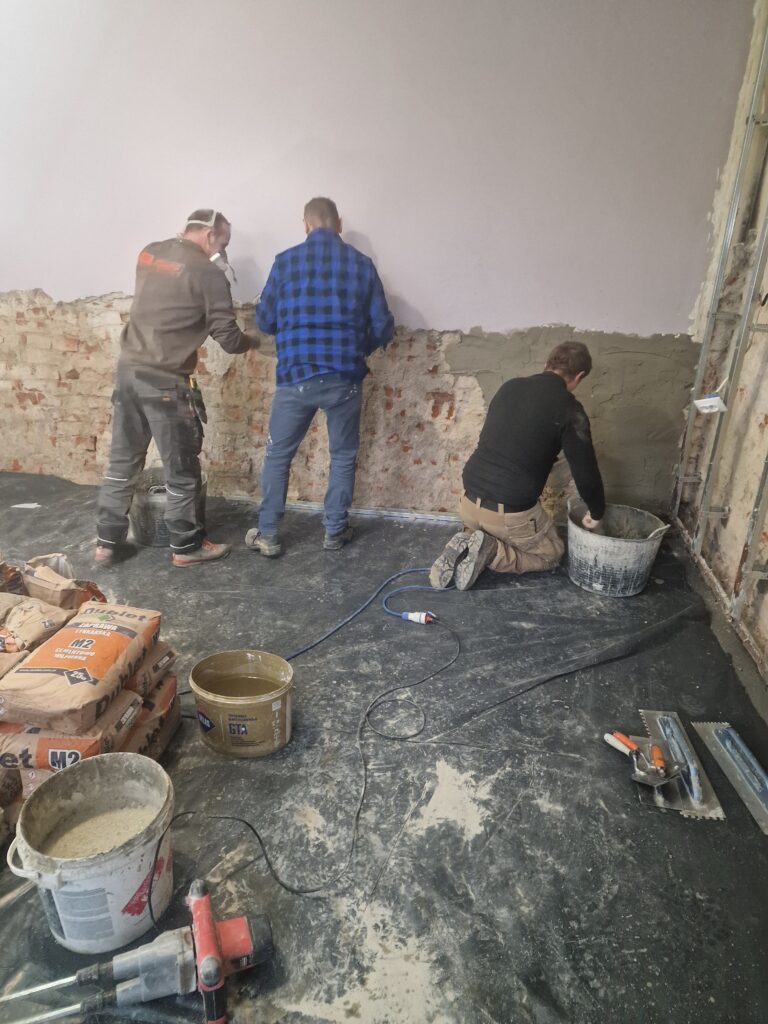 U pana Zbyszka w Kłodzku po zerwaniu podłóg, skuciu tynków, osuszeniu oraz zaimpregnowaniu ścian położyliśmy nowe podłogi oraz tynki. Zamontowaliśmy także kabinę prysznicową oraz umywalkę w łazience.